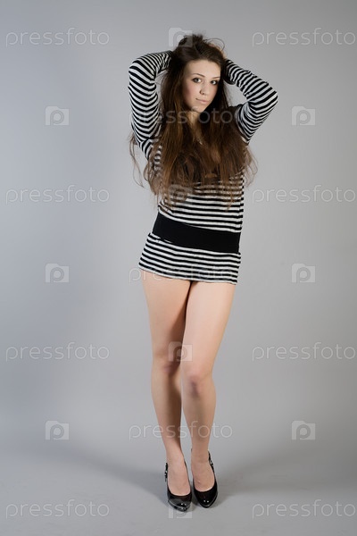 Девушка в коротком полосатом платье