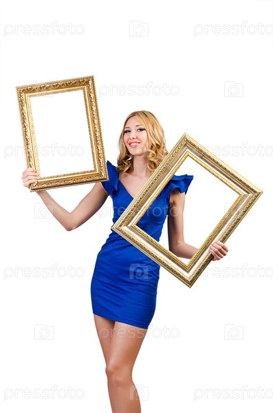 Женщина в модной одежде с фоторамкой