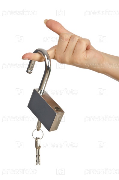 Рука с замком на белом