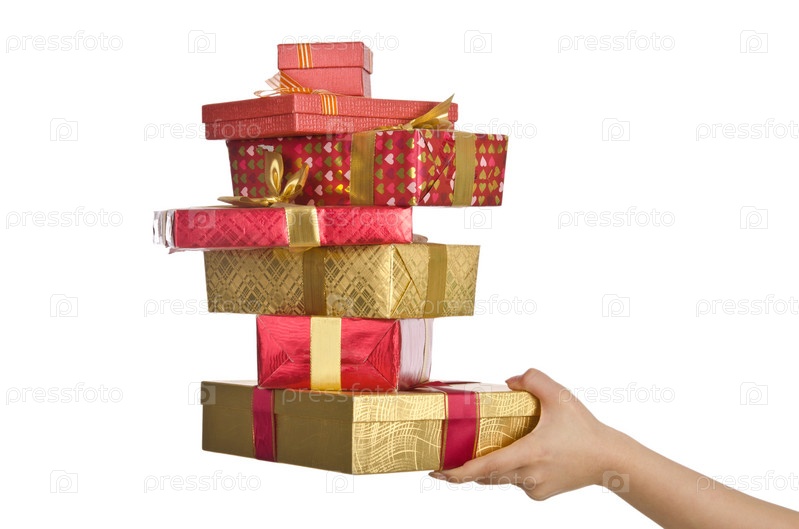 Рука держит стопку подарков