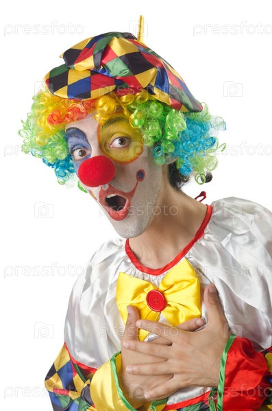 Забавный клоун на белом фоне