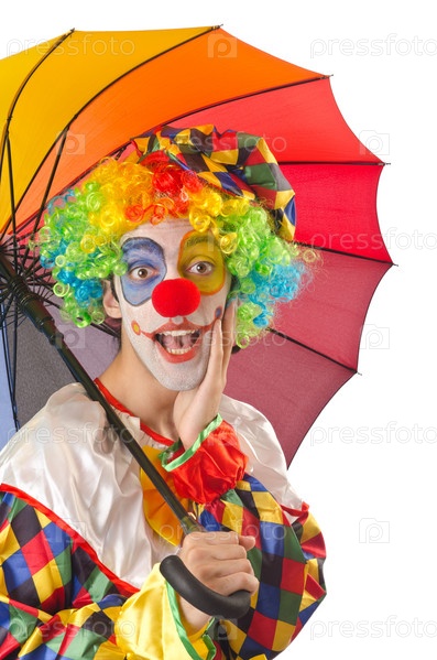 Забавный клоун на белом фоне