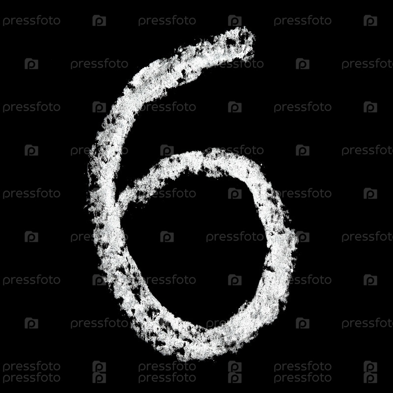 Написанная мелом цифра 6 на черном фоне
