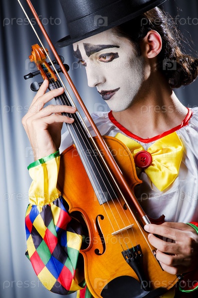 Клоун играет на скрипке