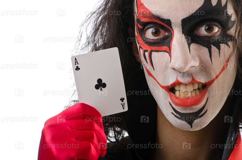 Джокер с картами, изолированный на белом фоне