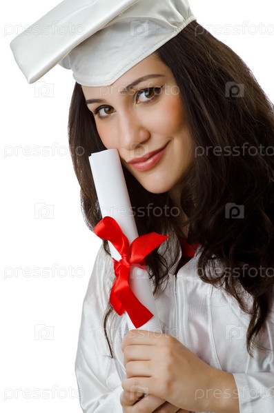 Счастливая выпускница на белом фоне