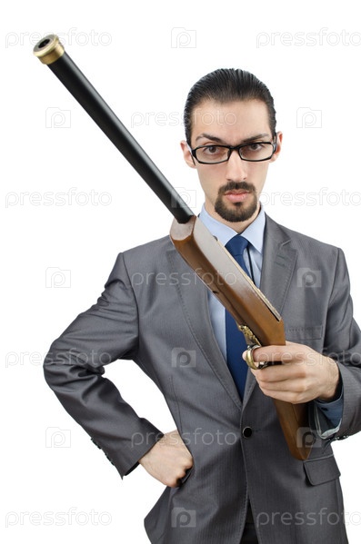 Бизнесмен с винтовкой, изолированный на белом фоне
