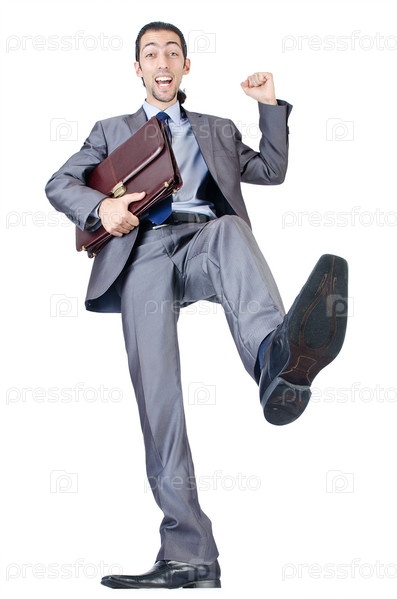Человек с портфелем на белом фоне