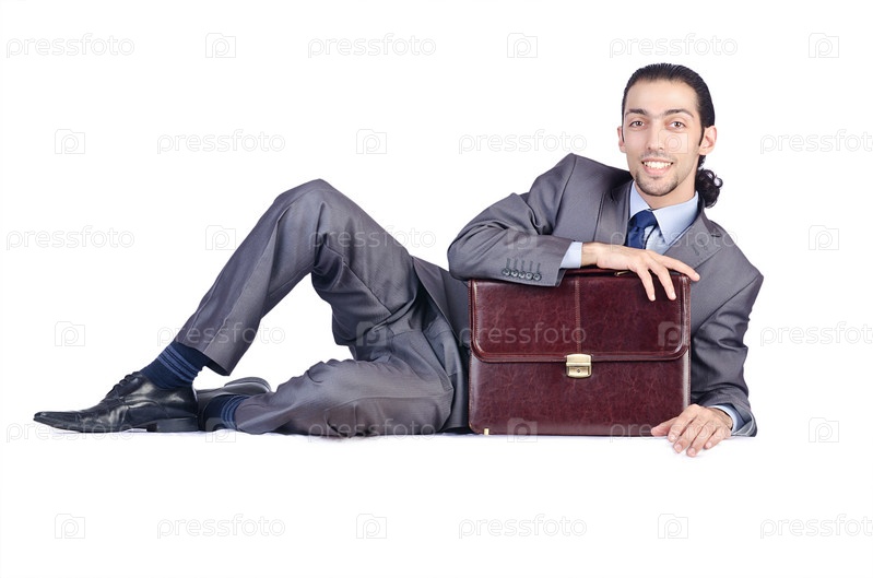 Человек с портфелем на белом фоне