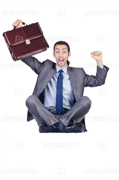 Человек с портфелем на белом фоне