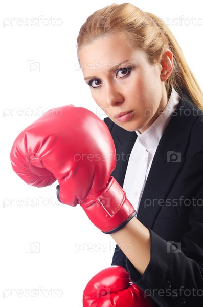 Женщина-боксер, изолированная на белом фоне