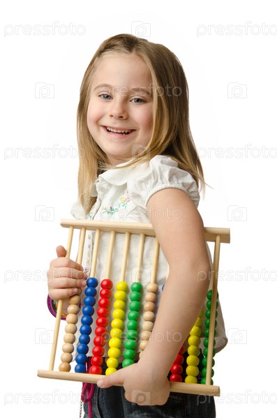 Девочка со счетами на белом фоне