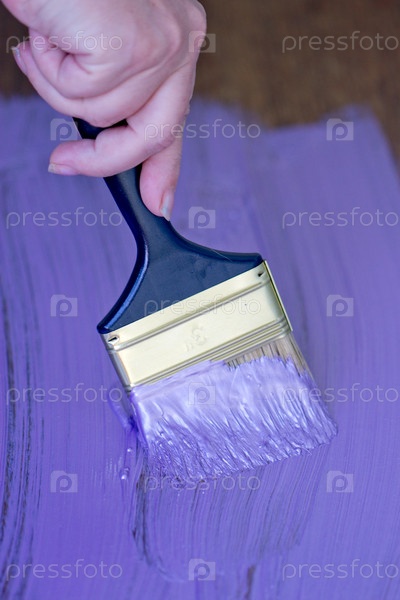 Кисть с фиолетовой краской в руке