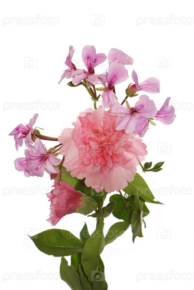 Букет праздничных декоративных цветов на белом фоне