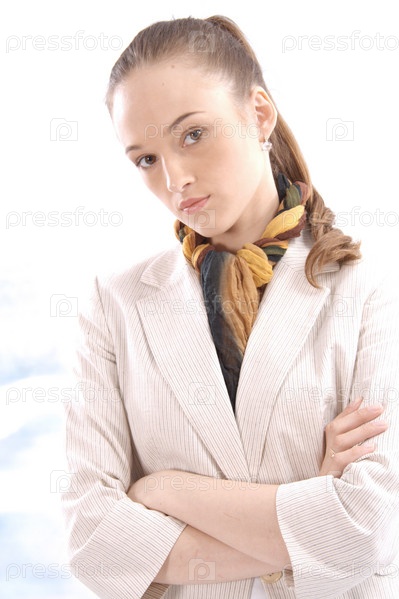 Портрет молодой деловой успешной женщины на белом фоне