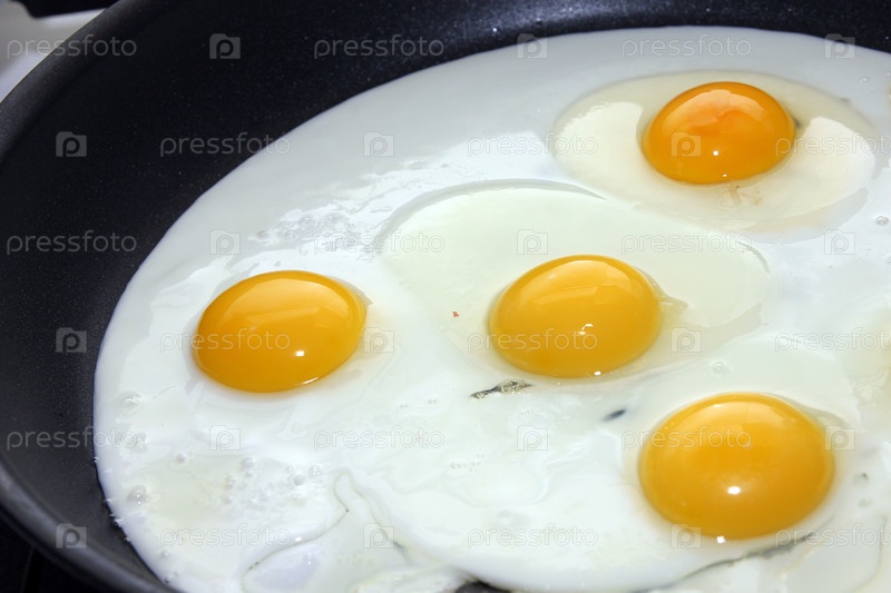 Приготовление жареных яиц к завтраку на сковороде