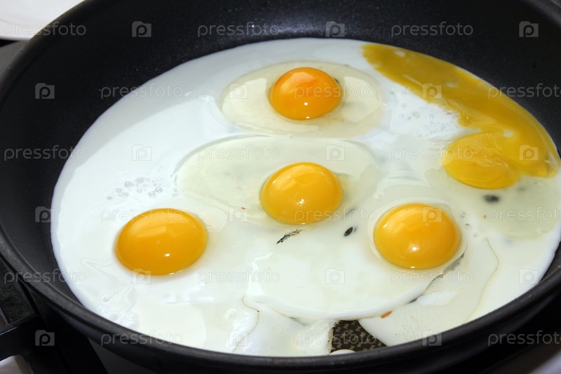 Приготовление жареных яиц к завтраку на сковороде