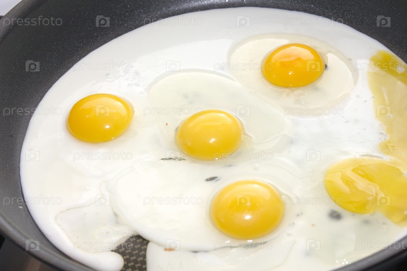 Приготовление жареных яиц к завтраку на сковороде