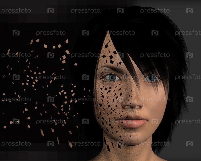 Электронная женщина загружает данные из интернета. Футуристическая трехмерная иллюстрация