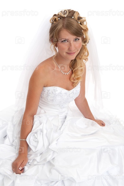 Девушка в свадебном платье на белом фоне