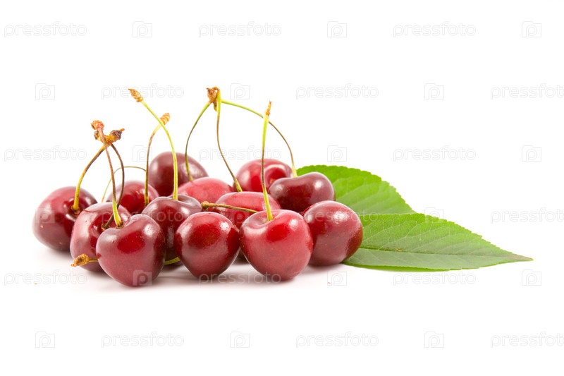Спелые ягоды черешни на белом фоне