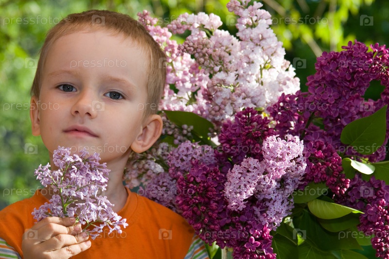 Мальчик с букетом сирени