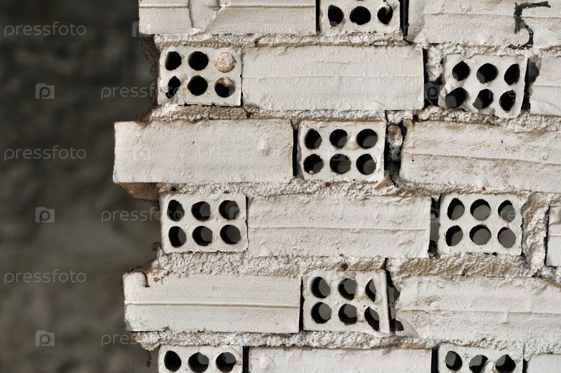 Сломанная шероховатая стена из белого кирпича в качестве фона