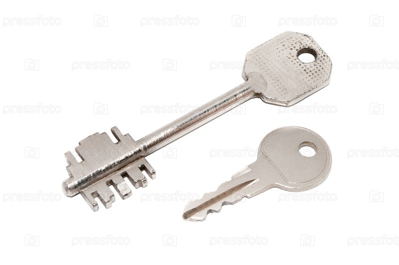 Два металлических ключа, изолированные на белом фоне