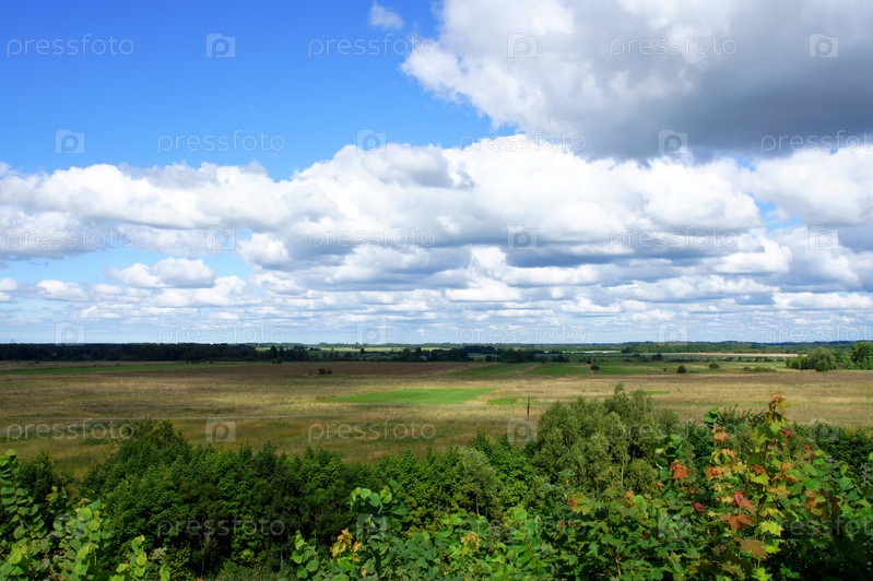 Поле на фоне облачного неба