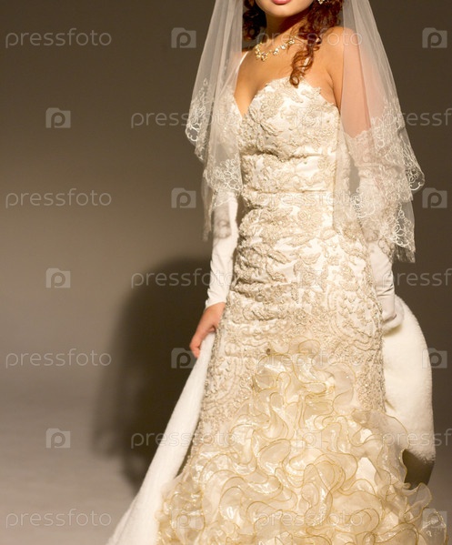 Невеста в свадебном платье на темном фоне