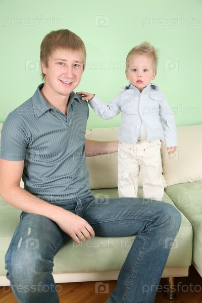 Отец с сыном на диване
