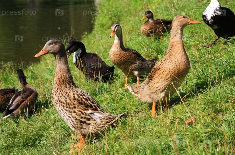 Утки на берегу пруда