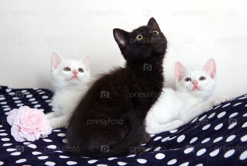 Три милых смешных котенка -черный и белый