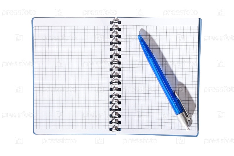 Блокнот с ручкой, изолированные на белом фоне