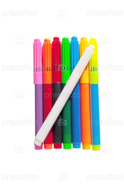 Набор цветных маркеров на белом фоне