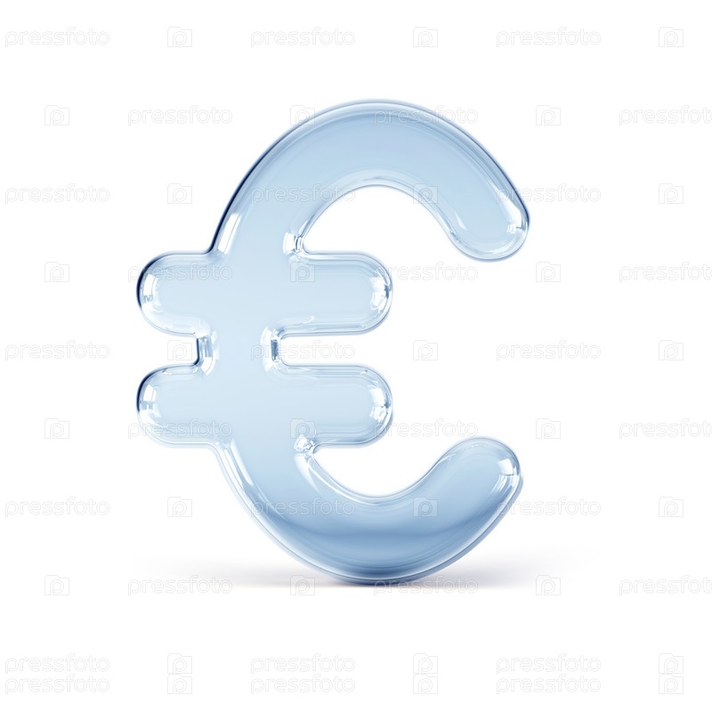 Символ евро из прозрачного стекла, 3d визуализация