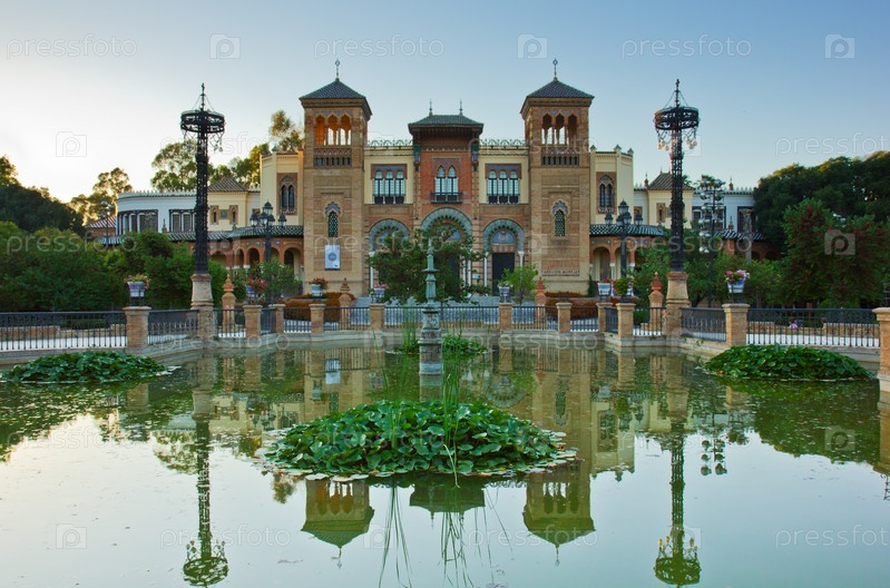 Павильон Мудехар в парке Марии Луизы в Севилье, Андалусия, Испания