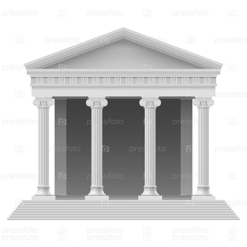 Портик древнего храма. Колоннада. Иллюстрация на белом фоне