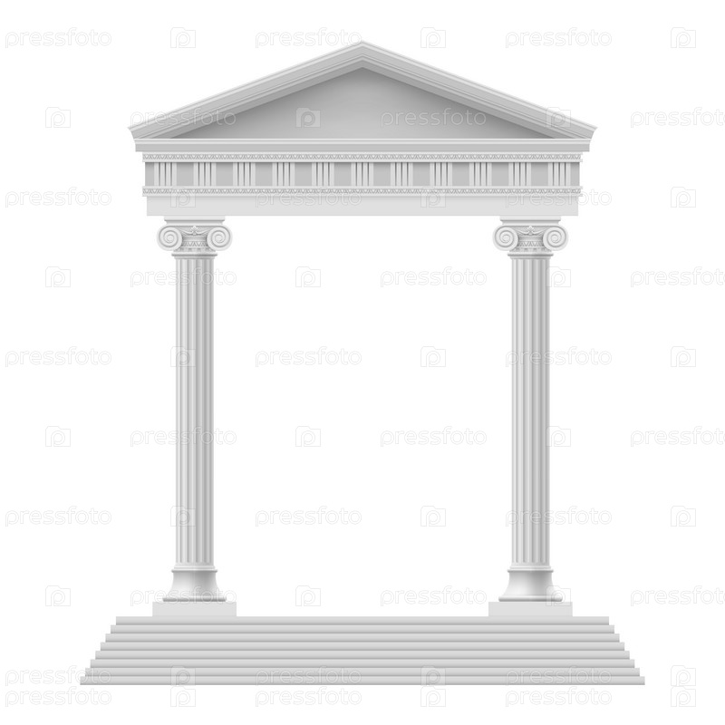 Простой портик древнего храма. Колоннада. Иллюстрация на белом