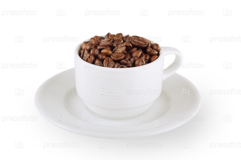 Чашка с кофейными зернами на белом фоне