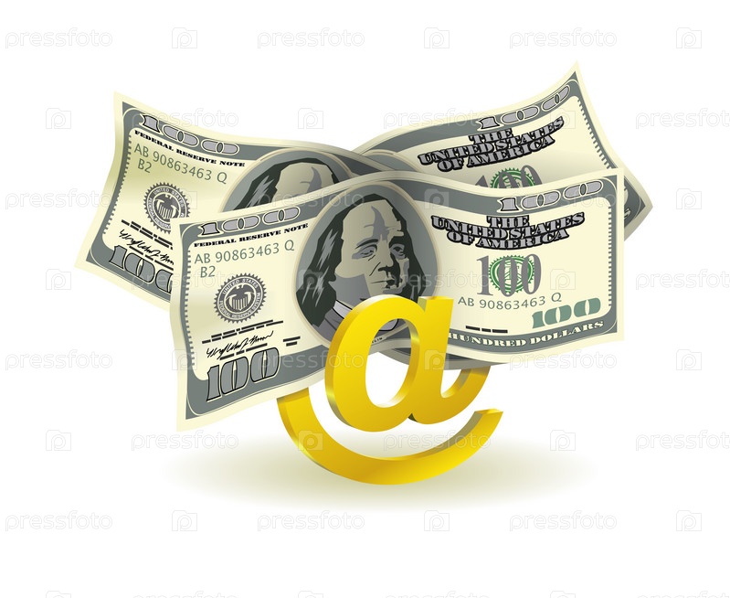 Значок электронной почты и банкноты на белом фоне