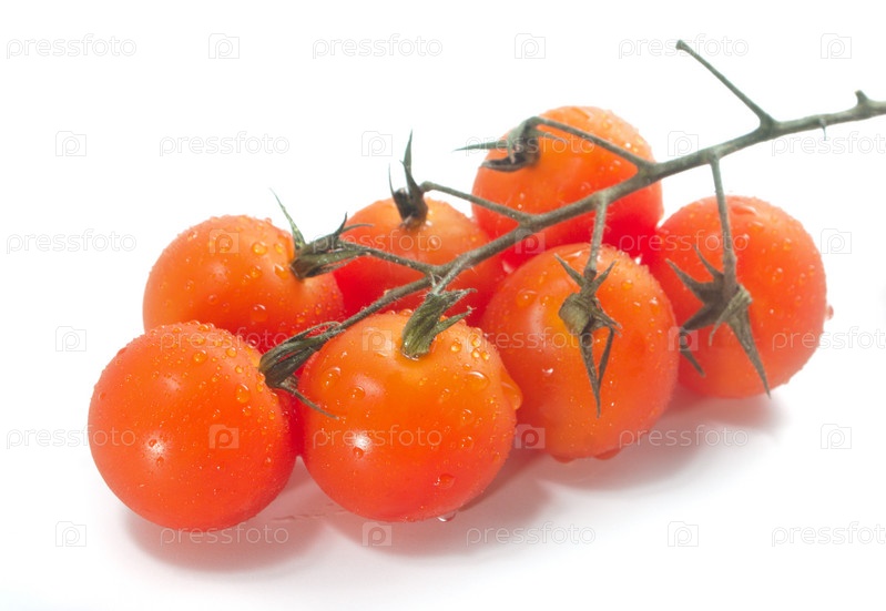 Помидоры черри на лозе с каплями воды