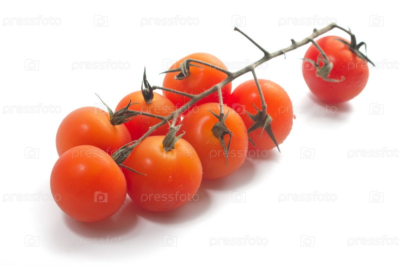 Помидоры черри на лозе с каплями воды