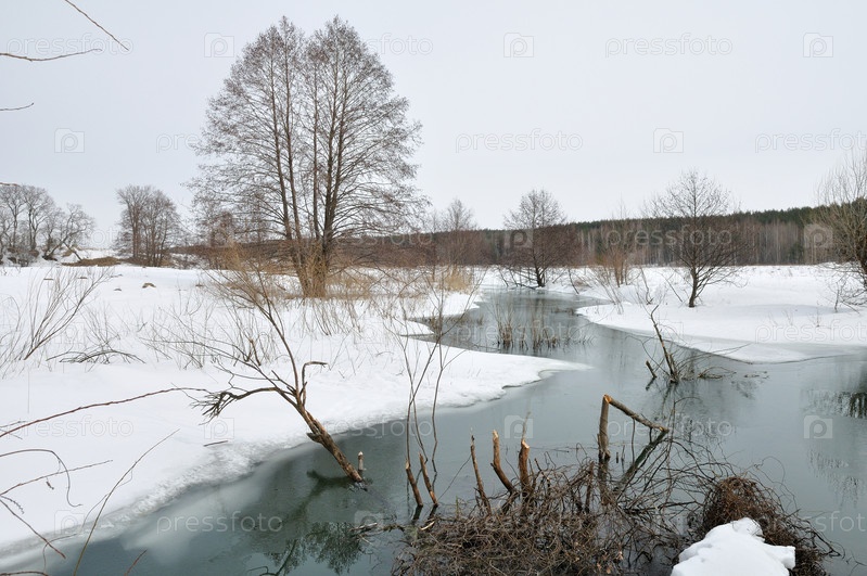 Деревья у зимней реки