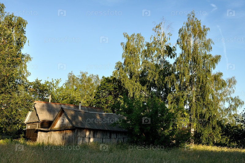 Сельские домики в деревьях вечером