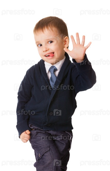 Забавный маленький мальчик со смшной гримасой, изолированный на белом фоне