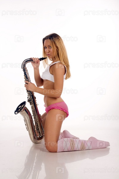 Портрет красивой девушки с саксофоном