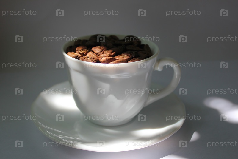 Белая чашка с кофейными зернами