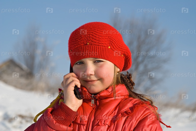 Девочка зимой на природе с телефоном
