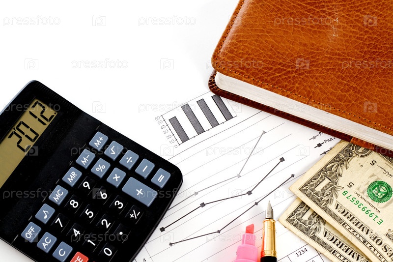 Выписки со счета, кредитные расчеты, калькулятор, перо и доллары